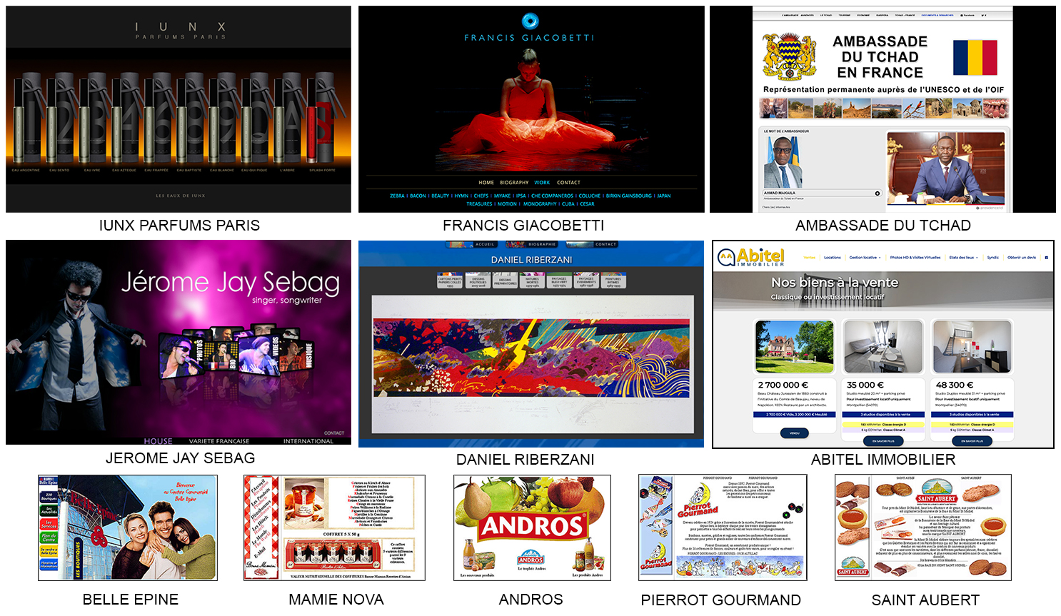 Dufresne&Corrigan (agence de publicité – Levallois) – CVB (Web Agency – Asnières) – OSEO (BPI) Paris – Safran Paris – Ecole des Roches (Verneuil) – CarolBuro Canon (Courbevoie)